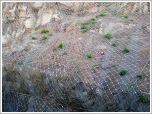 1、經(jīng)濟型:采用主動防護網(wǎng)產(chǎn)品搭配綠色植被防護,這樣主動防護網(wǎng)可與植被根系的固土作用結(jié)為一體,從而抑制坡面破壞和水土流失,反過來又保護了地貌和坡面植被,實現(xiàn)最佳的邊坡防護和環(huán)境保護目的。這個搭配方案可用在邊坡地形不是很高且有綠色植被生長條件的邊坡使用。