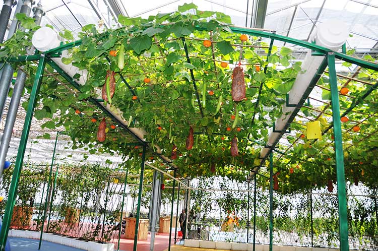 依托農業(yè)科技園、特種植物培養基地等研究機構形成的觀(guān)光溫室。這一類(lèi)型的內保溫日光溫室主要用于新奇特品種動(dòng)植物培育、科技研發(fā)等用途,與生產(chǎn)依托型觀(guān)光溫室一樣,觀(guān)光旅游只是輔助產(chǎn)業(yè)。主要利用試驗基地中的新奇特產(chǎn)品以及無(wú)土栽培、營(yíng)養液滴灌、生產(chǎn)要素全自動(dòng)調配等大眾游客難以接觸到的前沿現代農業(yè)技術(shù)作為核心吸引物,配套提供旅游服務(wù)設施與活動(dòng)項目,將科普教育與高科技農業(yè)觀(guān)光緊密結合,如內蒙古農科院智能溫室。