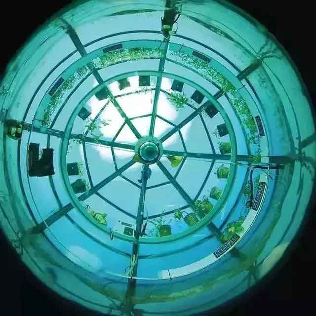 “采用正確的設計、保證溫室的結構能夠抵御風(fēng)暴的來(lái)襲是大的挑戰。我們將有機玻璃與鋼架結合在一起做出了個(gè)‘生物圈’。”這個(gè)半球體溫室直徑6英尺,高3英尺,并用28個(gè)可拆卸式的螺絲釘固定在海底。據Fontanesi表示,這種設計確保了溫室在風(fēng)暴來(lái)襲時(shí)的穩定性,使其能夠承受相對范圍內的振蕩,并防止其被海浪撞擊得支離破碎。植物通過(guò)生物圈內壁凝結水滴使得內部保持水分,其晝夜恒溫26度,是植物生長(cháng)的適宜環(huán)境。大量的二氧化碳也幫助其生長(cháng)。