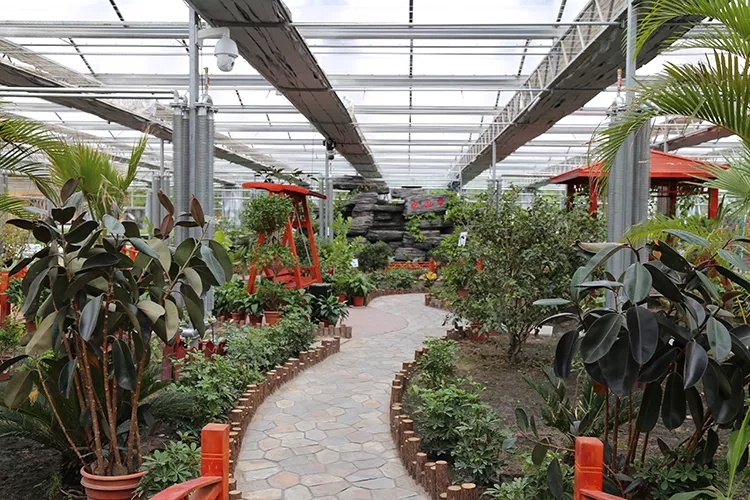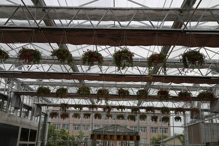 該智能溫室大棚占地約6060平方米,分為一號廳和二號廳。其中一號廳是新建的有錯層的玻璃溫室,分為盆栽花卉、盆栽果樹(shù)區、沙生植物區、熱帶風(fēng)情區、家庭園藝區等功能區。二號廳由舊溫室改造而成,頂部為陽(yáng)光板,四周立面為玻璃,配置了智能控制系統,有無(wú)土栽培區、育苗區、采栽體驗區等功能區。智能溫室全部配備了內、外保溫系統,冬季保溫,比普通溫室節能。溫棚內移動(dòng)苗床一次育苗30萬(wàn)株,可供給巴彥霍德406座溫棚,一定程度上帶動(dòng)了農民增收。不論是熱帶植物、水果還是沙漠植物,在這里你可以一覽無(wú)余,一年四季感受綠色勃勃生機。