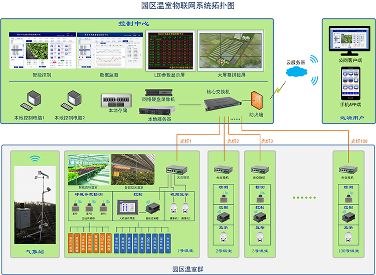 設施農業(yè)智能控制系統:通過(guò)農業(yè)物聯(lián)網(wǎng)系統,可以設定溫室內各種設備運行環(huán)境條件,當環(huán)境信息未達到預先制定的條件時(shí),自動(dòng)啟動(dòng)溫室內的相關(guān)設備,比如:風(fēng)機自動(dòng)調節通風(fēng)降溫、內外遮陽(yáng)自動(dòng)調節光照強度、自動(dòng)噴滴灌、自動(dòng)加濕除濕、自動(dòng)施肥,實(shí)現智能化管理,節水,省電,省人工,更省心。