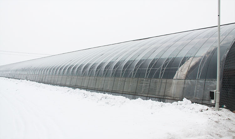 3、保溫性:雙膜單被,隔熱保溫好。晴天,外界-30℃下,棚內溫度可以達到8℃以上。冬季不加溫可以進(jìn)行果菜類(lèi)生產(chǎn)。